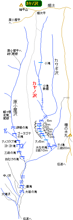 原小屋沢→(かやの沢)、前々前回には下降に使わせてもらい(