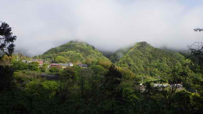 大群山の山頂はまだ雲の中だが、帰る時間帯には青い空の下に緑々とした山体を見せるだろう。