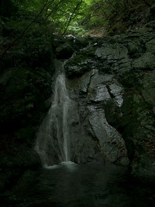 滝近くは左右両岸とも険しく、右岸は露岩がむき出しだし、右岸も落ち口と同じ高さぐらいのところが、やはり岩が剥き出しになっていて容易に巻いて通るというわけには行かなそう。