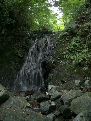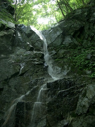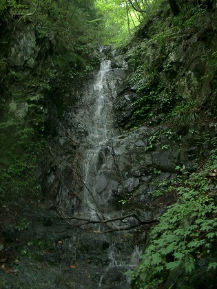 その尾根を20m程下降して大滝を眺める。