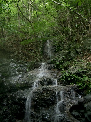 尾根に上がると、上に続く5m、6mの滝が見える。