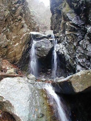 丹沢 小屋戸沢 道志川から袖平山へ登る沢 マシラ丹沢で一番窮した沢 凍てる円形劇場のダブル滝を君は見たか