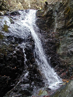 流れの中には水垢がたっぷり付着し、触れてみると全くのヌルヌル滝である。