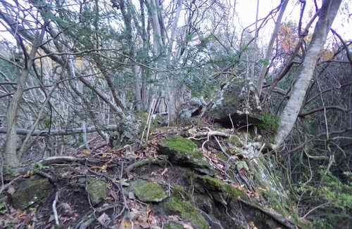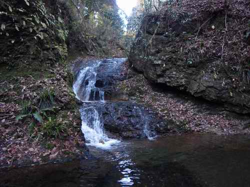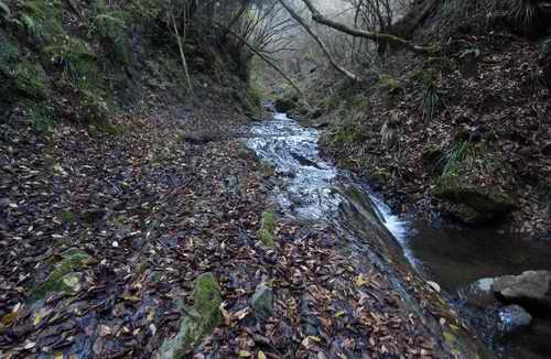 自宅6:30〜宮ヶ瀬7:15〜鳥屋〜青野原入口〜関所跡碑7:40〜寺入沢方向へ〜車止めゲート7:45〜蛍の里の看板(自転車デポ)7:55〜寺入沢遡行〜二股(茨菰山への道の入り口になっているらしい)8:10〜車道終点9:00〜直進の尾根(岩尾根)を登る〜稜線9:20〜20m下がって鞍部へ[旧登山道(以前は寺入沢に下る方向に標識があったが風に飛んだkして今は無い)])9:25〜P596m経由茨菰山との分岐9:50〜P413m10:10〜作業経路で寺入沢(取水堰の下方百m付近)10:20〜二股10:30〜左股を少しだけ探索〜二股10:50〜自転車デポ11:00〜宮ヶ瀬11:25〜自宅12:10 2015/12/05 晴
