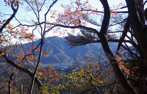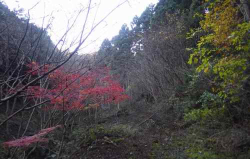 里であっても紅葉の盛りを過ぎ、枯葉色に代わり、遅染の木の葉がちらりと残っている程度。