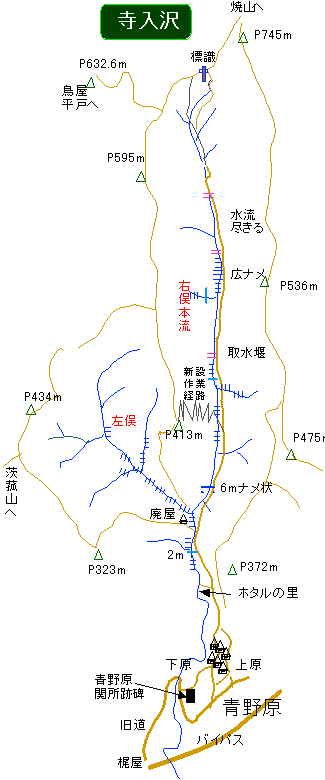 寺入沢は青野原から焼山・柏原の頭付近の稜線に上り詰める沢である。