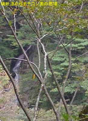 その道を200m進むと前下方にモチコシ沢中流の滝が見えてくる。