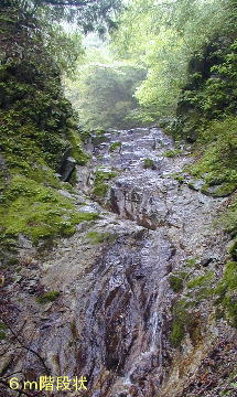 右手に涸棚10mを見て、6m滝は傾斜が緩く階段状の中央を登る。