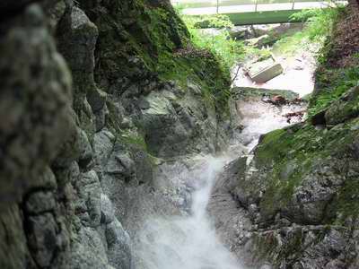 この巻き道はかなり面倒で、どちらかといえば、右岸の方がやさしいが、林道を立間橋側に40m程戻った地点の傾斜面を登らなければならないので、少し時間がかかる。