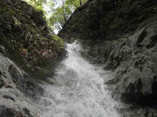 一つめを登って、小滝をいくつか登った後に出てくる8m程の滝だ。釜はあるがちっちゃい。