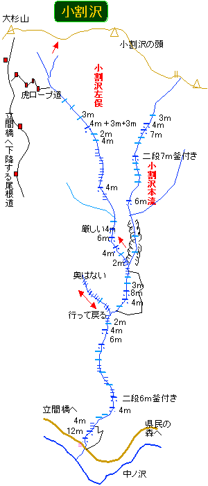 今回は新しく歩いたんだから、前回の小割沢の遡行図に付け加えようとして滝の配置を左右で比べたら、右も左も同じような内容だった。