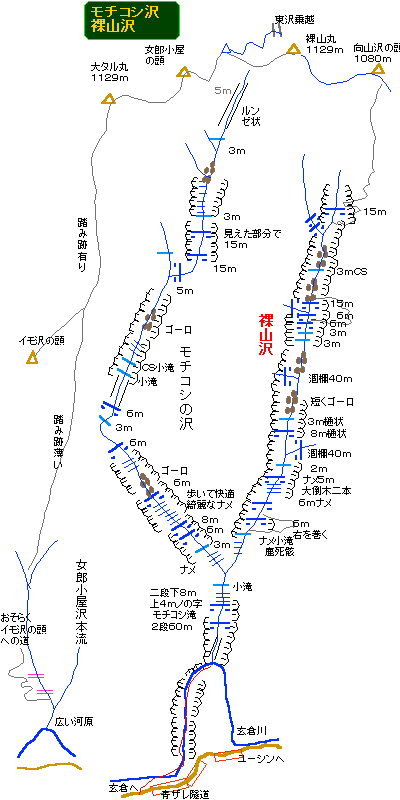 前回、モチコシ沢に来た際には勢いのままに進んで、気が付いたら女郎小屋の頭を経由して芋沢の頭をかすめて女郎小屋沢出会いに降る大周遊コースにはまりこんでしまったので、今回は「間違わないぞ」と気をつけていたつもりが