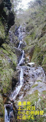 続く6mも水通しは登れないが、流れ右に鹿道があり、小さく巻く。