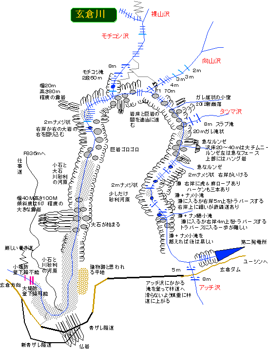 とりあえず、今の状態なら大雨が降ったり玄倉ダムが開門(取水を停止)していない限り、玄倉川の数十年前は全域がこんな感じだったんだろうという風景が、短い逆U字の間だけが楽しめるた思うが、少しの水量でも状況は変幻自在な川のことだから、明日の状態を保証するなんてことは無く、安全とか快適さを確約するものでもないですよ。あしからず