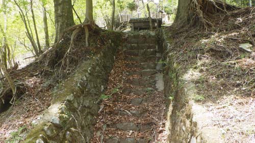 この社、建て直しからなら僅かな年月なのに、石を段に組んで積んだ参道は創建時から形をいささかも失っていないようなのに、後方10mに立つぴかぴかと輝く送電鉄塔(玄倉第二発電所起点)が山神のありがたさを見事にかき消し、そして山中の湿気は木々建具を早々に腐らせ、前に来たときに比べても朽ちが進み、今はその板書きは見あたらない。
