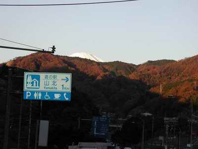 夜が明け、山の上に富士山の頂上だけが見える清水から神縄に向かう。