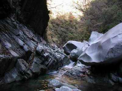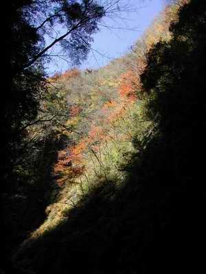 自宅4:55〜本厚木5:31(5:18に乗り遅れる)〜松田6:19〜谷峨6:35頃〜歩いて湯本平へ7:30〜滝口沢大滝往復〜神縄7:46富士急バス〜玄倉8:00〜青ザレ隧道手前9:00〜玄倉川〜モチコシ沢出会9:40〜モチコシ滝往復9:50〜向山沢出会い〜玄倉ダム下10:45〜玄倉発電所〜廃屋から河原11:10-15〜同角沢出会い11:20-11:25〜ユーシン11:50-12:05〜玄倉13:15富士急バス13:26〜新松田14:24〜本厚木14:55頃〜自宅 2004/11/27 爆弾低気圧が北日本を襲い猛烈な大風が吹いたそうだが、丹沢では一日中穏やかに晴れた暖かい日でした。