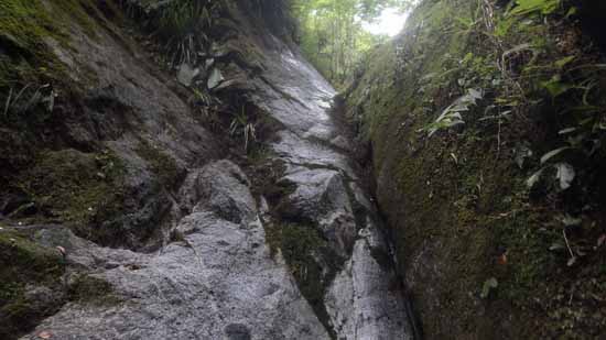 前回はこの危険地帯に入り込む直前に、ちゃんと左手に回避していた(前回は50m下方で左手に移って岩場を登っていた)。