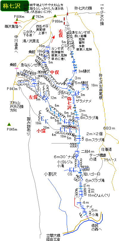 弥七沢とか、小割沢を登ると、