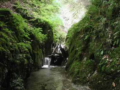 それをくぐってゴルジュを歩く。沢の最初から今日は水の中を歩く事となる。