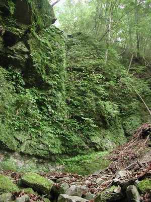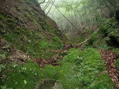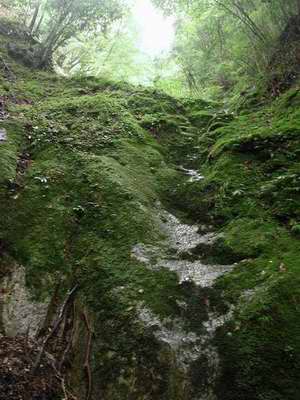 沢床は厚い苔に覆われていて急激に山腹を駆け上がる
