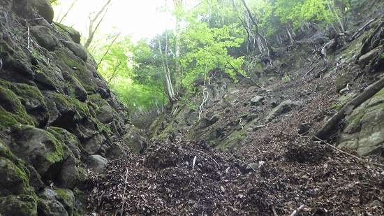 このように鍋嵐の小さな沢を登った後にすぐ隣の尾根道
