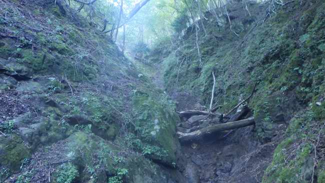 そして痩岩でできた両岸が狭まった急なルンゼ状が始まる。