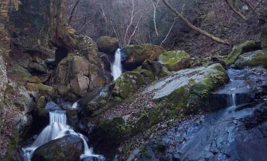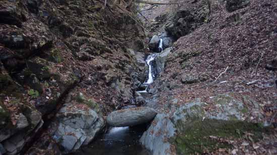 そこの滝に続く小滝二つは脇を軽く抜けると岩床の中の細い溝を水が流れて行き止まりは4mcs滝だ。
