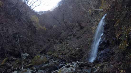 その滝は取り付きさえ出来れば簡単に上れるが、手前に小さく深い釜を持っていて、夏場でも水泳を遠慮している俺には冬はとてもではないがトライ不能なのだ。
