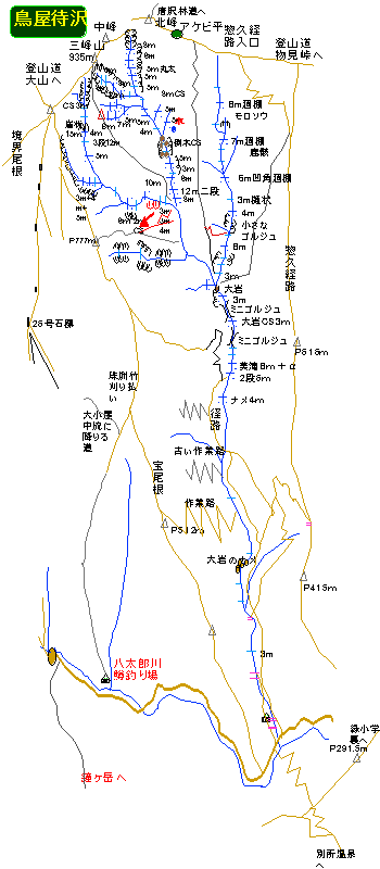 あそこは通常なら下から登ってくるところではないし、降ったら、降れればだが、鳥屋待沢二俣の分岐点に直に降りられるという便益は考えられなくもないが、その前に急斜面に突き当たってしまう。