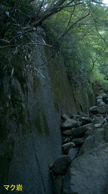 「マク岩」は石工が暇に任せてコツコツコツコツと「平たがね」を当て、金槌をふるって仕上げた人造物を思わせる綺麗な長さ50m、高さ10mの一枚岩である。