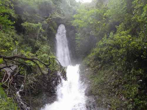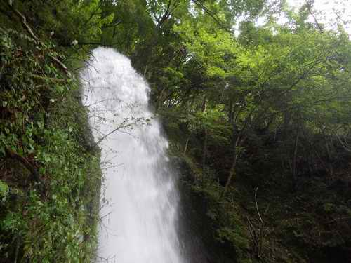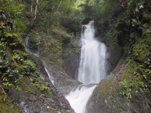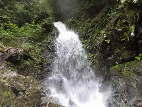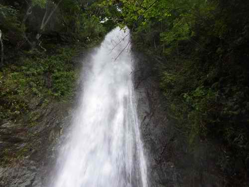5mの滝の上に25mくらいの滝(ボウズクリの滝)がたくさんの水を落としている。