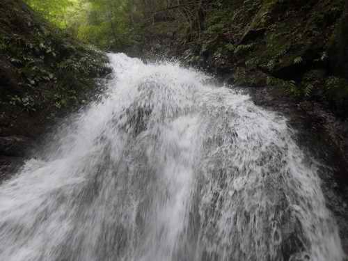 いつもなら、ここらからは小滝の落口からは僅かばかりの水が流れるのみなのに、今日は岩幅一杯に落ちる。