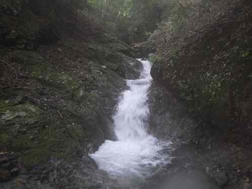 自宅5:15〜本厚木5:42〜松田6:20〜谷峨6:35〜向河原橋7:15〜ボウツクリの滝7:30〜坊主作沢〜沢を横断する経路で9:20〜仕事路830mのピークの南尾根に出る9:25〜830mのピーク9:30〜P869m〜番ヶ平9:35〜登山道を下る〜火打沢の東屋(泥落し)10:10_20〜山市場(バス)10:26〜谷峨10:48〜新松田11:14〜本厚木11:45〜自宅12:05 20150718曇り&小雨