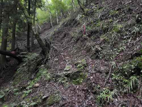 以前は右側のボサ中に道が付けられ石灯籠なども立っていたのに、その道は崩落して無い。