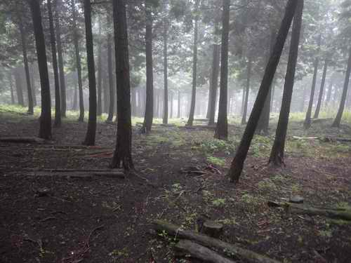 それくらいの量なので予定を変える必要もないのに、雨がなかったならば勘太郎山から塩沢不老の滝に降ろうかと計画していたのを、そこらは天気が良くても送電鉄塔付近で迷うのに、今日のように視界無き中を目的通りに降っていくのは難しいと弱気になって、番ヶ平から登山道で降ることにした。