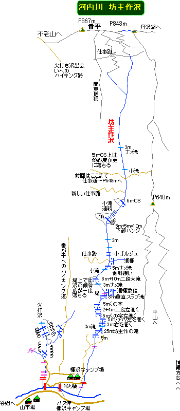 丹沢 河内川(丹沢ダム下流)) ボウズクリの沢 坊主作沢 Y を歩く マシラ