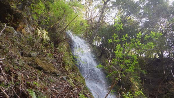 そこで滝風を身に受け、落口を見上げたら滝の左側から滝に離れず近寄らずの距離を取って巻く。