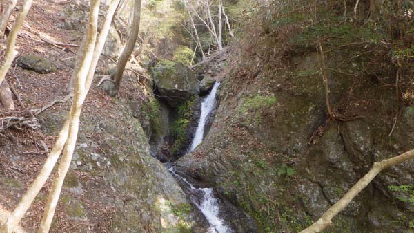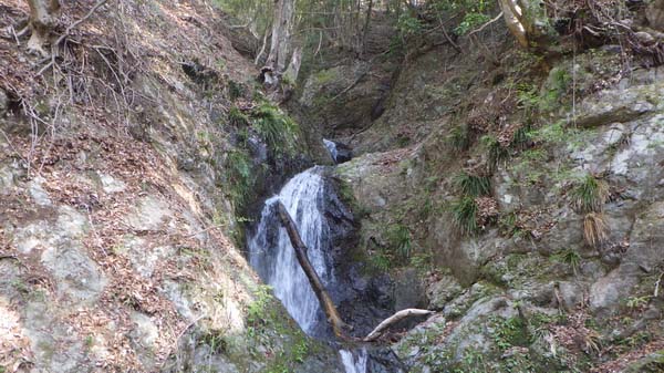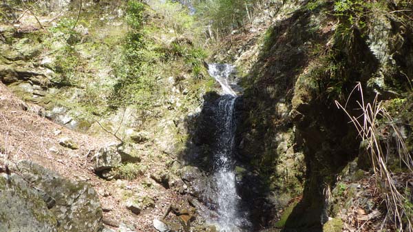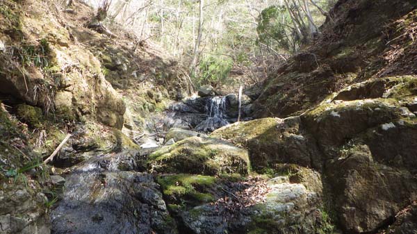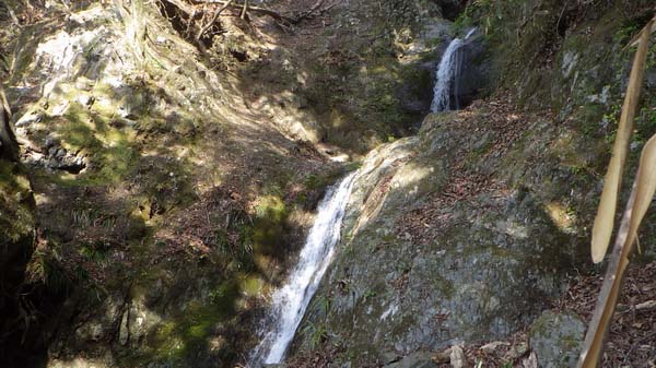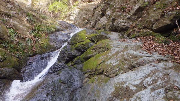 そこの横には滝壺につながる小路があったが、だいぶ前に地盤が崩れて通れなくなり、ボウツクリ滝の下に出るためには下部続きの小滝(二段)を登ることになるが、この小滝も最下段一つめの逆層気味の岩肌が来る度に登りがたくなっていって、まあ、緩くて凹凸少ない滑り台状だから滑っても大事には至らないのだが、それなりに注意を込めて登ることになる。