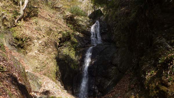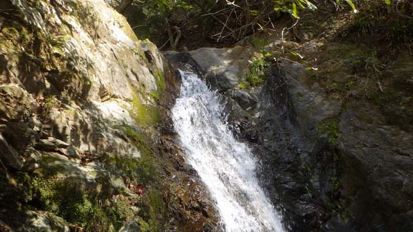 簡単な小滝を通り過ぎて少し行くと、二段15〜18mの滝が出てくる。
