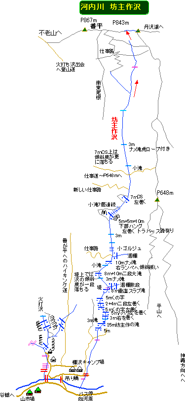 丹沢の沢歩き 坊作りの沢 河内川 マシラ