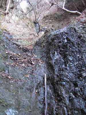 道迷い沢歩き人が転落して、そいつを引きずり卸すために救助隊が付けた道とも考えるられる険しさと言っていいかな。