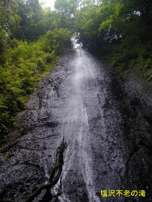 下ばっかり見ていると気が付かずに行きすぎてしまうよう右側の狭い谷間に不老の滝が立っている。