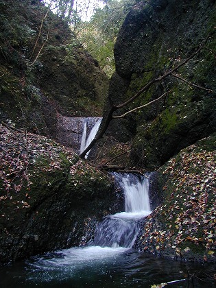 その滝壺は5m程の距離を挟んで、下の滝につながっている。