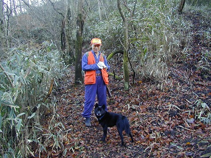 2m程の岩を木の根っ子を掘り出してホールドにして下り、沢床には細い常緑樹を束ねて最後は葉っぱまでを掴んで下に下りきる。