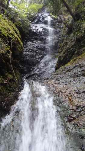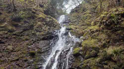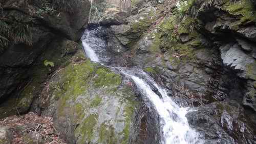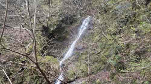 自宅6:05〜本厚木6:20〜松田(駅の回りを周回)7:23JRで〜谷峨7:50乗車〜湯本平8:00下車〜滝口橋8:05〜F1下/F2滝壺には垂れずに洞窟上から滝口滝を見物して下に降りる8:35〜左岸を巻いて大滝上に8:50〜導水堤9:00〜二俣9:50〜右俣大滝下9:55〜上10:20〜上流二俣で右10:25〜沢に分かれて左岸を上り始める10:40〜送電鉄塔10:45〜登山道10:50〜大野山11:10〜共和小学校跡地11:50〜川村関所跡12:15〜山北駅周辺散策〜山北12:54〜新松田13:09〜本厚木〜自宅14:00 20160402曇