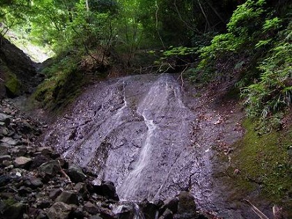 たまには岩の小さな段差もあるのだが、およそ滝と言うにはほど遠い。