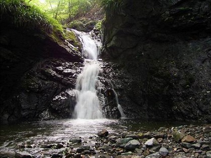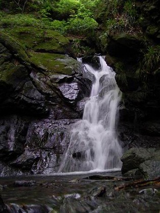 知る人ぞ知る、やや湾曲した一枚の垂直の岩を多くの水が一気果敢に流れ下るさすがの滝。