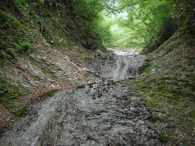 ナメは途中に何カ所か角度を上げた部分があって、そうは言っても40度くらいだし、距離は数mだから、危なくもなんともない。