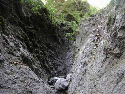下は小滝になっていて、上から崩れるのではないかと思うとついつい足が速まるが、もう一つ奥の砂防堤にすぐに前を塞がれる。